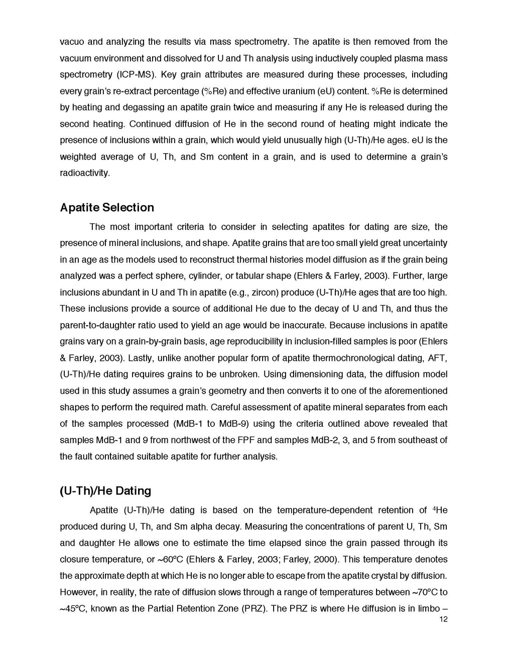 The goal of this research was to constrain the timing of latest movement along this fault system in the Casco Bay region of Maine using (U-Th)/He apatite thermochronology.